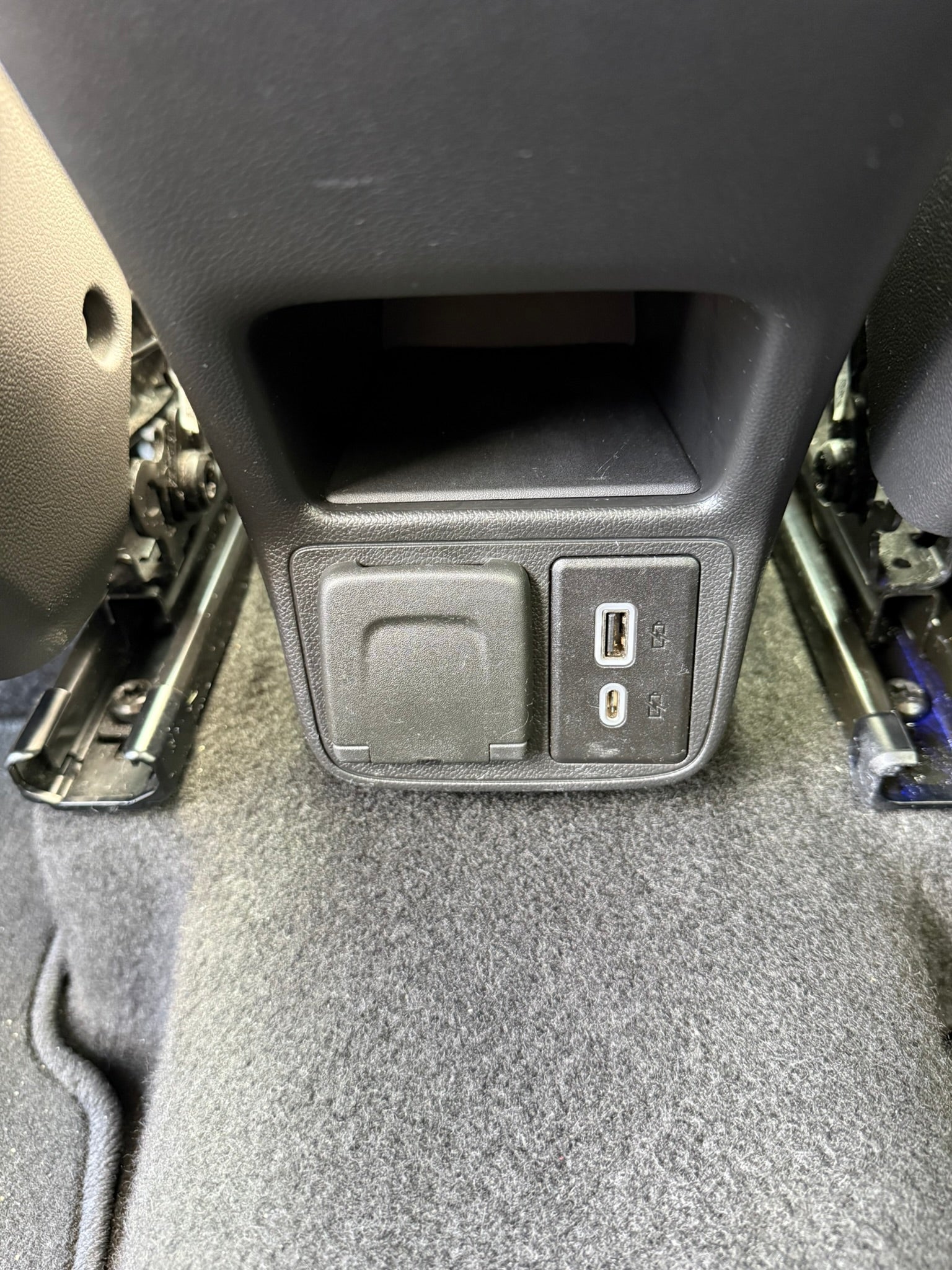 - One type-A and one type-C charging only USB ports2, located on rear of center console